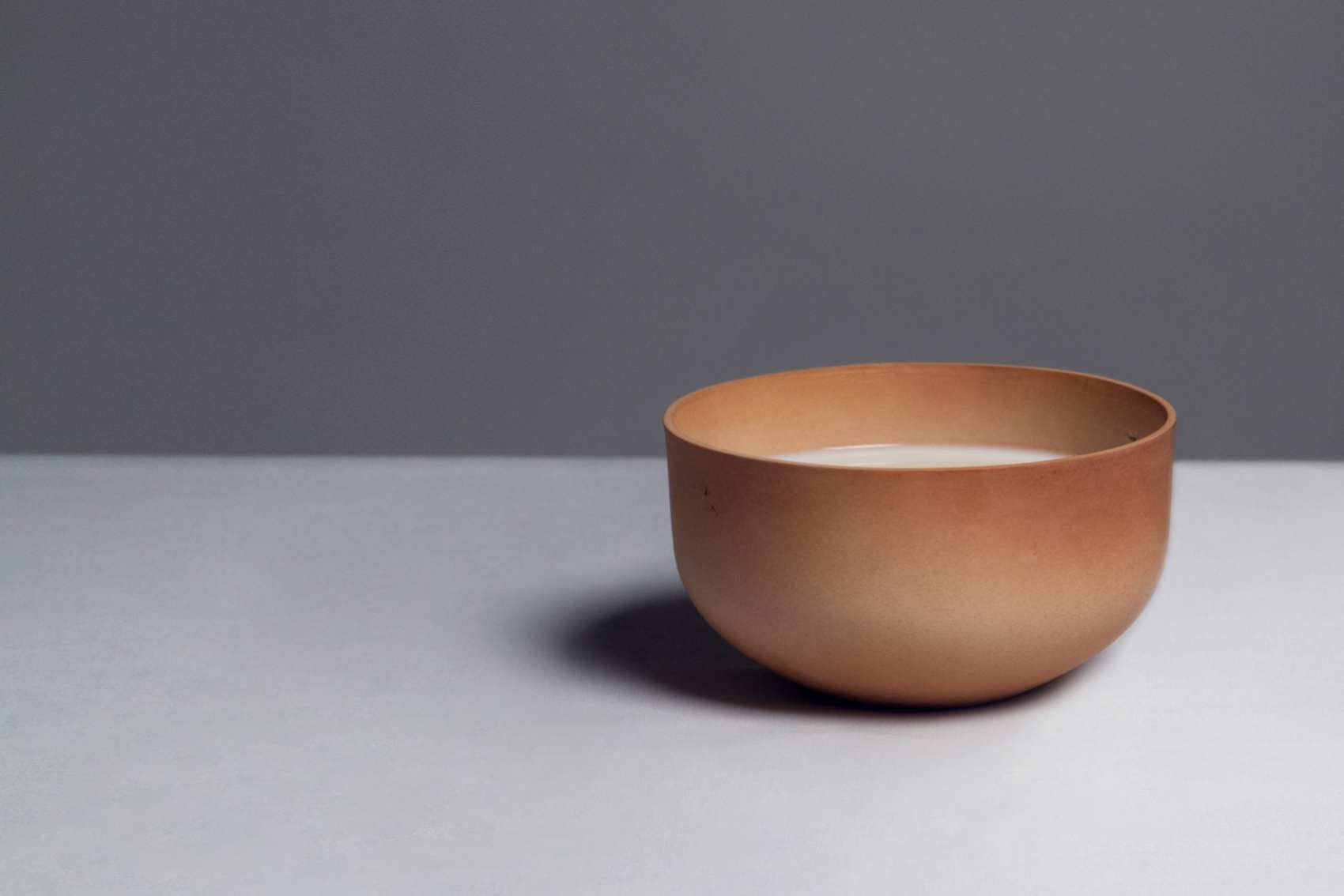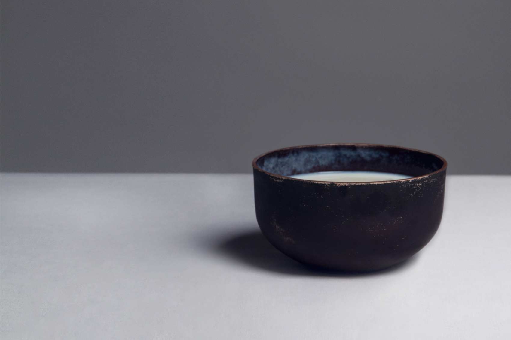 De melkindustrie en haar overproductie inspireerden designer Ekaterina Semenova om restanten melk te gaan bewerken. Ze transformeert de melk in bioplastic en brengt dit als melkglazuur aan op keramiek. Bij het bakken bepaalt het vetgehalte de tint zijdeglansbruin.